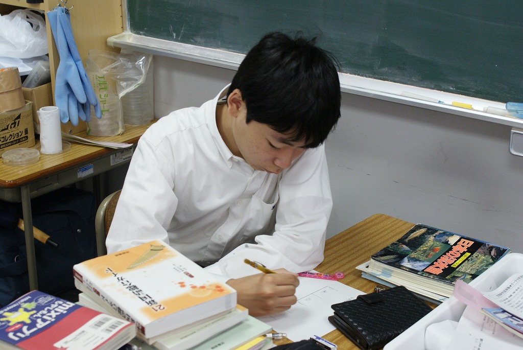 中・高校の部活、生物部へ顔を出しにいきました。先日四代目部長が卒業し、五代目部長率いる部は気持ち新たに新年度を迎えようとしています。今度部内発表会があるようで、それぞれ記録をまとめたりレポートを書いたりしていました。