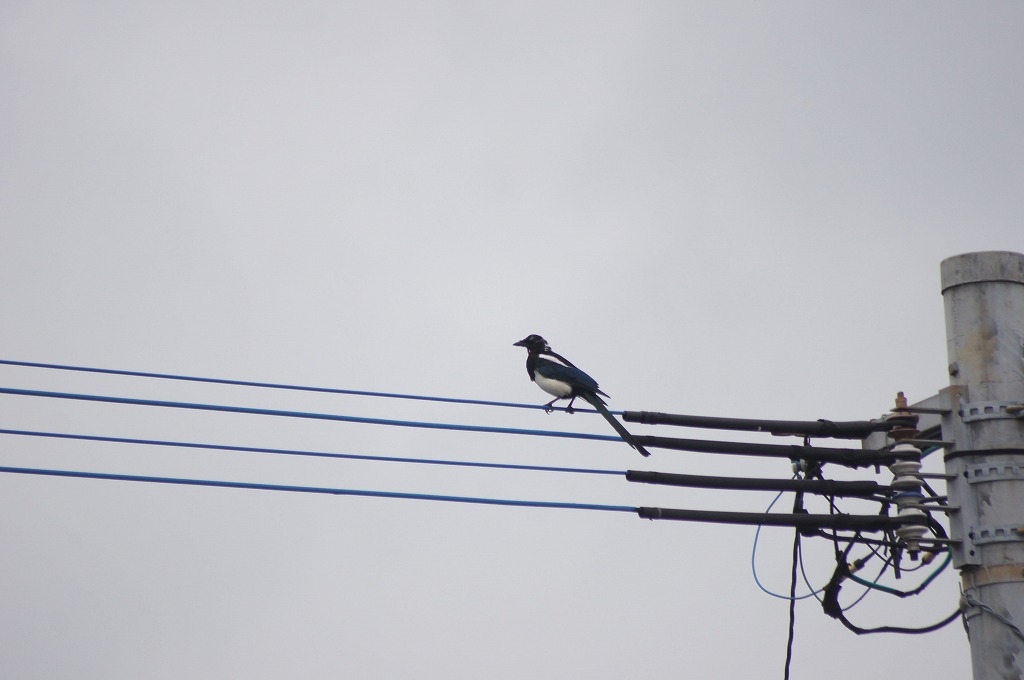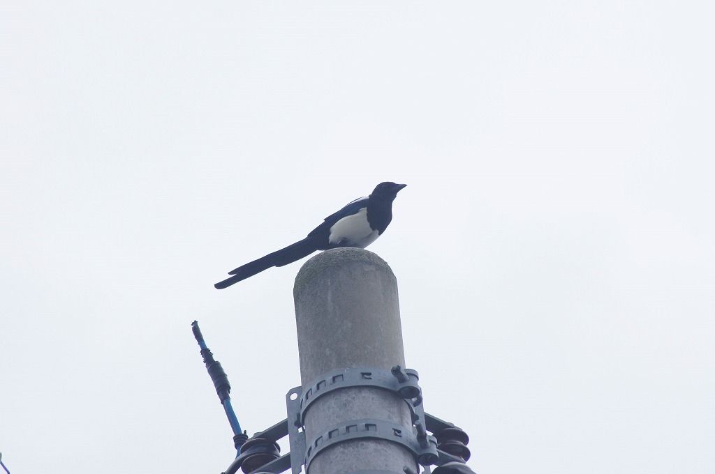 初めて見たカササギ。綺麗な鳥である(写真は汚い)。