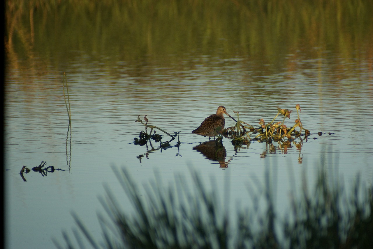 その後湿地で野鳥の観察。写真はオオハシシギ?
