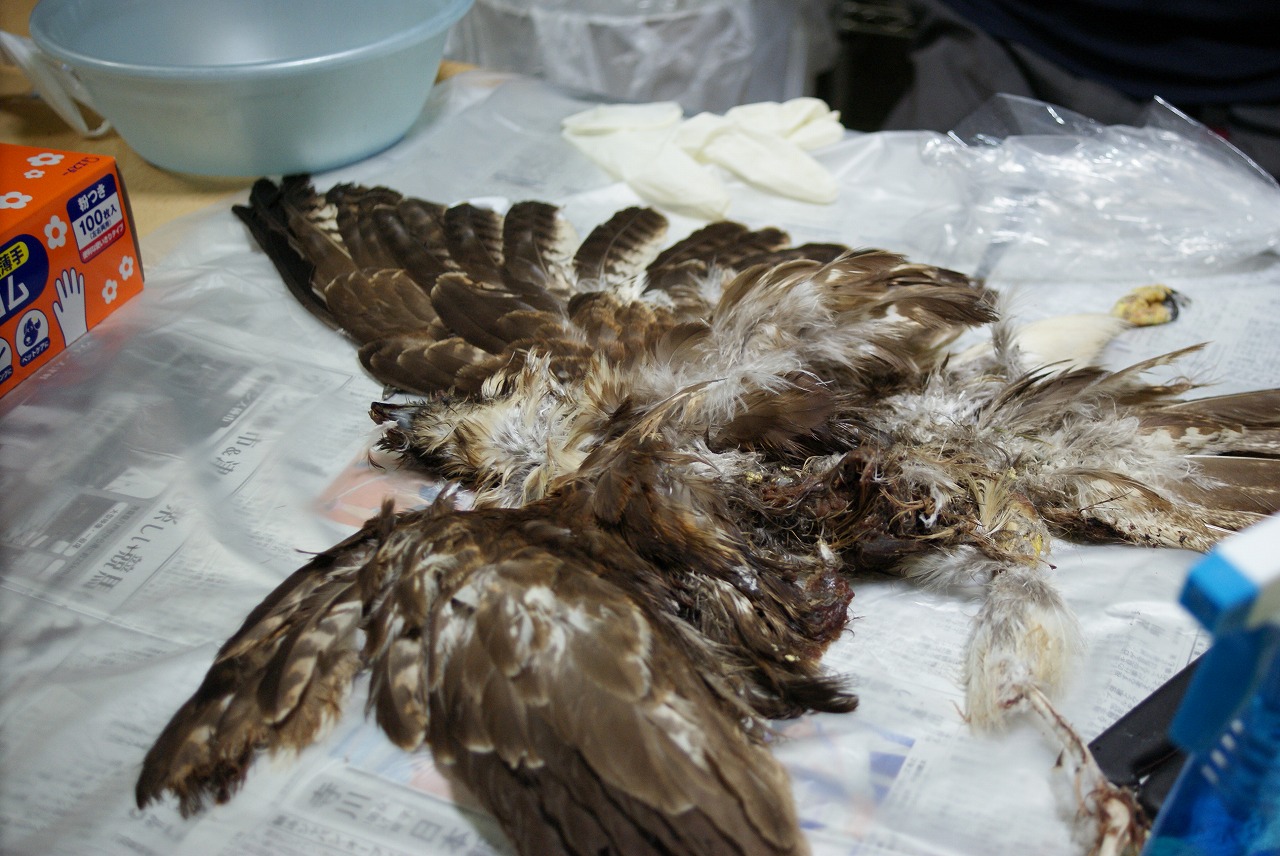 ノスリの死骸拾ったから解体しようぜ!とお誘いがあったのでやってきました。