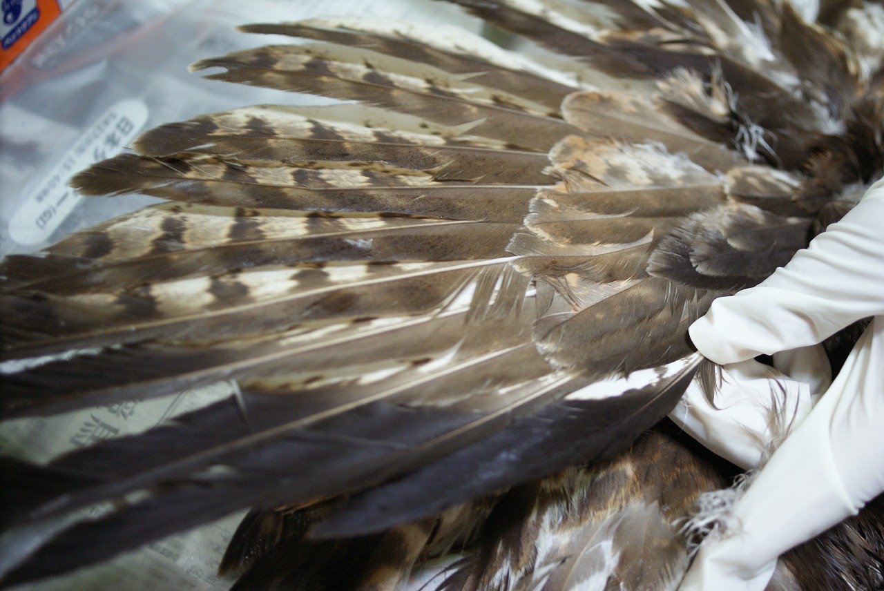 右翼、胴の状態が悪いので左翼の翼標本にしました。